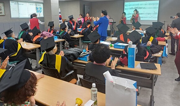 수료식에서는 어르신들이 북구청에서 준비한 학위복과 학사모를 착용하고 수료 소감 발표에 이어 수료증 수여식, 흥겨운 축하 무대가 펼쳐졌고 어르신들의 진솔한 소감 발표는 참석자들에게 감동을 선사했다.