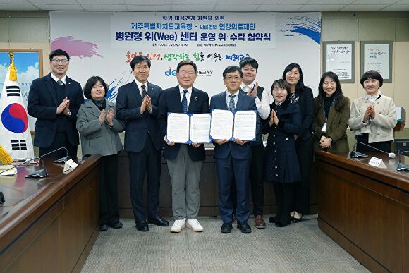 [아이뉴스24 박태진 기자] 제주특별자치도교육청은 지난 22일 오후 교육청에서 의료법인 연강의료재단(연강참병원)과 제주특별자치도교육청 병원형 위(Wee) 센터 운영 위·수탁 협약을 체결했다.