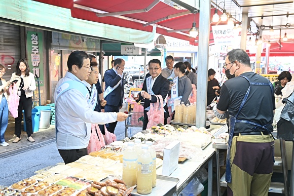 이 시장은 고물가에 따른 소비감소로 어려움을 겪는 상인들의 고충을 청취하며, 지역경제 활성화를 이룰 수 있는 정책을 적극 펼쳐가겠다고 강조했다.