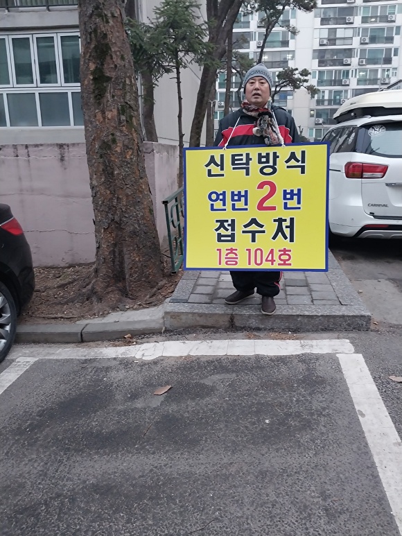 김대진 위원장은 2단지 입구의 출근시 복잡한 교통문제로 인해 아침마다 교통정리와 동의서 징구 홍보를 하고 있다.