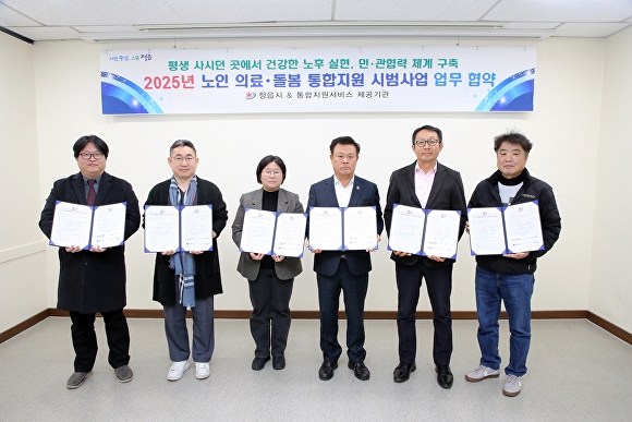 이번 협약에는 △탑가정의학과의원(방문의료서비스) △대한물리치료사협회 정읍지부(재활·운동 지원) △정읍주거복지센터(주거환경 개선) △정읍시니어클럽(건강 맞춤식 제공) △다솜재가복지센터(방문요양 서비스) 등 5개 기관이 참여했다.