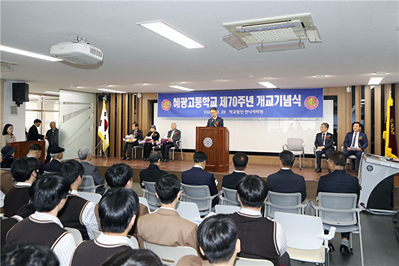 [아이뉴스24 정예진 기자] 부산광역시 중구에 위치한 혜광고등학교가 지난달 28일 본교 별관 대강당에서 개교 70주년 기념식을 열었다.