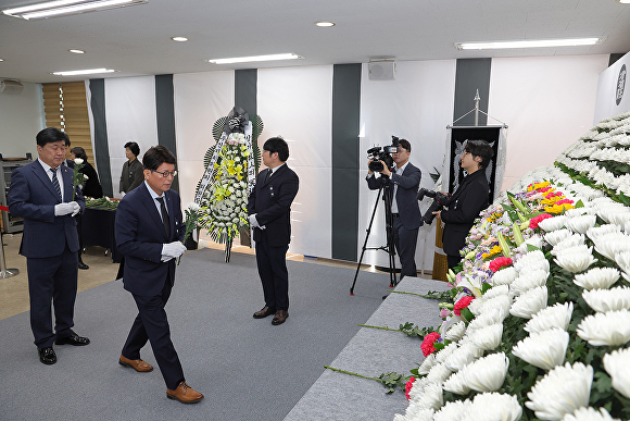 [아이뉴스24 이창재 기자] 배광식 대구 북구청장이 9일 오전 무태조야동행정복지센터 2층에 설치된 서변동 산불진화 헬기조종사 추모분향소를 찾아 구 간부 공무원 및 주민들과 함께 희생자의 넋을 기리며 헌화하고 참배했다.