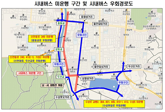 대회 당일에는 원활한 운영을 위해 오전 8시부터 낮 12시까지 일부 구간의 교통이 통제된다. 통제 구간은 신천동로(상동교무태교) 양방향과 무학로 들안길삼거리상동교 방향, 상동시장~파동 방향 직진 구간이며, 이에 따라 11개 시내버스 노선도 우회 운행될 예정이다.