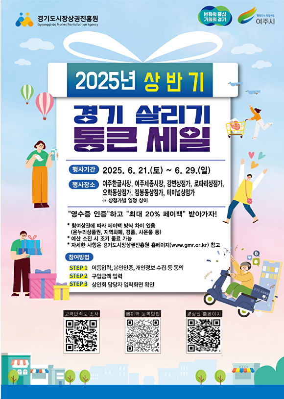 환급은 각 상인회 사무실 또는 지정 매장에서 가능하며, 참여 상권 및 자세한 내용은 경기도시장상권진흥원 홈페이지 또는 여주시청 홈페이지에서 확인할 수 있다.