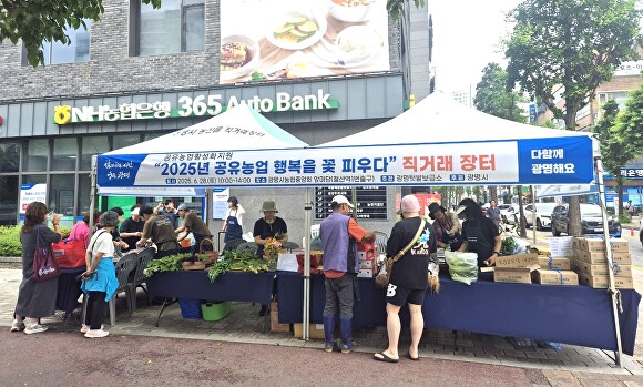 [아이뉴스24 정재수 기자] 경기도 광명시와 광명텃밭보급소는 지난 28일 농협중앙회 광명시지부 앞에서 공유농업 활성화를 위한 ‘공유농업 행복을 꽃피우다’의 첫 번째 프로그램으로 직거래장터를 운영했다.