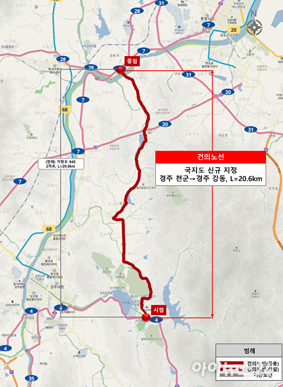 [아이뉴스24 이진우 기자] 경북 경주시는 강동에서 천북, 보문동을 잇는 지방도 945호선 20.6km 구간이 국가지원지방도(이하 국지도) 19호선으로 승격됐다고 14일 밝혔다.
