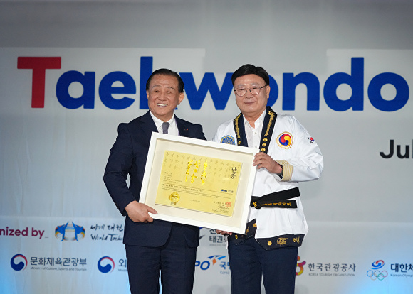 문 의장은 지난 19일 무주군 태권도원에서 열린 ‘제18회 세계태권도 문화엑스포’ 행사장에서 세계태권도본부(국기원장 이동섭)로부터 태권도 발전에 이바지한 공로로 ‘태권도 명예 9단’증을 수여받았다.