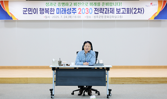 [아이뉴스24 이창재 기자] 경북 성주군은 지난 24일 군청 문화강좌실에서 ‘군민이 행복한 미래성주 2030 전략과제 2차 보고회’를 열고 군의 지속 가능한 미래 비전을 위한 중장기 전략을 논의했다.