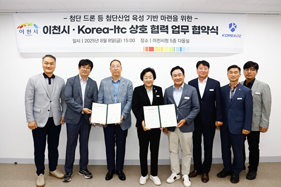 김 시장은 “이번 협약은 이천시가 미래 드론 산업의 허브 도시로 도약하는 첫걸음”이라며 “KOREA-ITC와의 협력을 통해 기업 유치뿐만 아니라 지역경제 활성화, 일자리 창출, 전문 인재 양성까지 이어지는 종합적 성과를 만들어 가겠다”고 말했다.