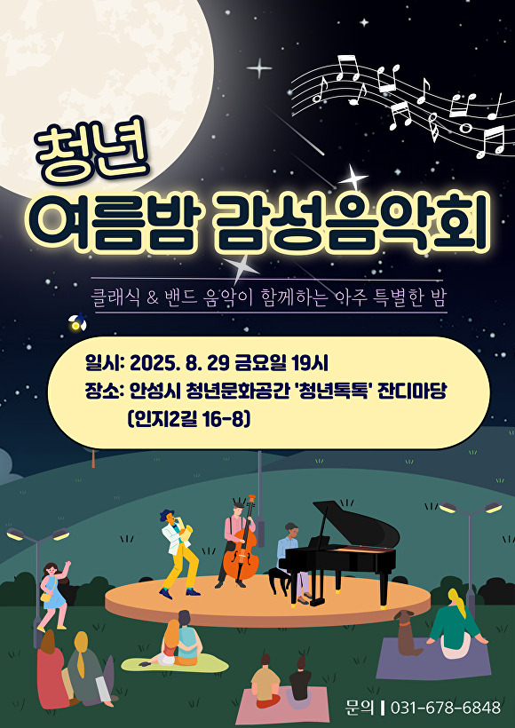 음악회 관람은 시민 누구나 가능하며, 자세한 사항은 안성시청년문화공간 청년톡톡으로 문의하면 된다.