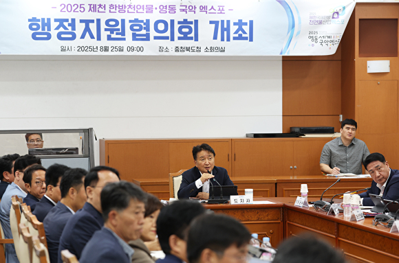 [아이뉴스24 표윤지 기자] 충북도는 25일 김영환 지사 주재로 ‘2025 제천국제한방천연물산업엑스포’와 ‘2025 영동세계국악엑스포’ 행정지원협의회를 열었다고 밝혔다.