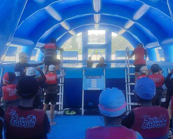 [아이뉴스24 이윤 기자] 경기도 이천시 부발초등학교는 지난 20일부터 29일까지 학교 운동장에 설치된 이동식 수영장에서 3·4학년 학생 120명을 대상으로 ‘이동식 생존 수영 교실’을 운영했다.