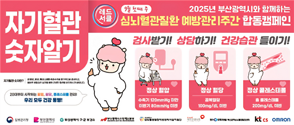 [아이뉴스24 정예진 기자] 부산광역시가 심뇌혈관질환 예방관리 주간을 맞아 3일 오전 10시30분부터 오후 1시까지 부산광역시청 대강당 앞에서 ‘2025년 자기혈관 숫자알기, 레드서클 캠페인’을 개최한다.
