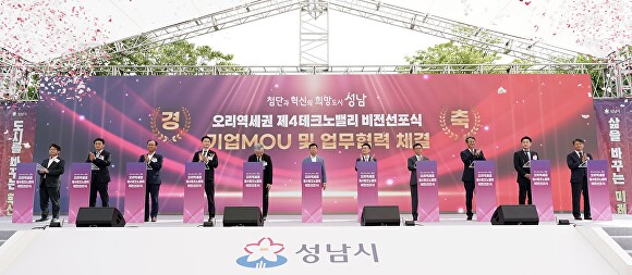 [아이뉴스24 정재수 기자] 경기도 성남시는 지난 3일 분당구 구미동 농수산물유통센터에서 ‘오리역세권 제4테크노밸리 비전 선포식’을 열고, 성남의 미래 100년을 책임질 핵심 프로젝트의 닻을 힘차게 올렸다.