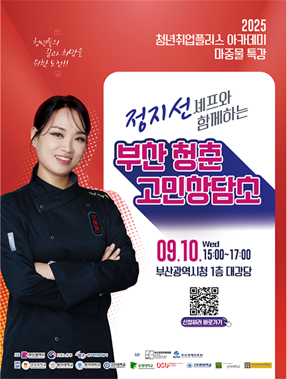 김귀옥 부산광역시 청년산학국장은 “오늘 진행된 마중물 특강은 단순한 강연을 넘어 청년들이 자신의 고민을 솔직하게 마주하고 해답을 찾는 계기가 될 것”이라며 “정지선 셰프의 도전과 성장 이야기가 청년들에게 현실적인 용기와 자신감을 불어넣어, 취업 준비 과정에서도 흔들림 없이 도전을 이어가길 바란다”고 말했다.