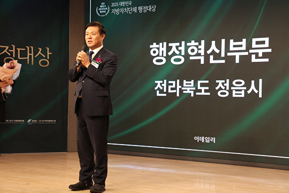 19일 서울 중구 KG타워 하모니홀에서 열린 ‘2025 대한민국 지방자치단체 행정대상’ 시상식에서 정읍시는 행정혁신부문 대상을 품었다.