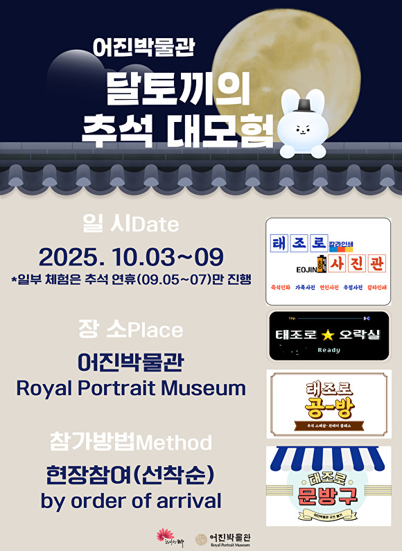 또한 어진박물관은 ‘달토끼의 추석 대모험’을 주제로 추석을 맞아 전주 태조로에 놀러 온 달토끼와 함께 사진관, 오락실, 공방, 문방구 등을 방문하는 콘셉트의 체험 프로그램을 운영한다.