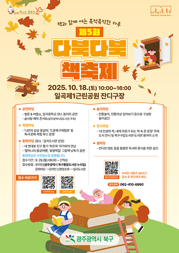[아이뉴스24 윤준호 기자] 광주시 북구는 오는 18일 오전 10시부터 일곡제1근린공원과 일곡도서관 일대에서 ‘다북다북 책축제’를 개최한다고 13일 밝혔다.