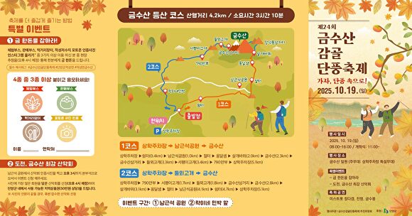 박완수 축제추진위원장은 “아름다운 금수산 단풍 아래에서 자연과 사람, 그리고 문화가 어우러지는 따뜻한 가을 축제가 되길 바란다”고 말했다.