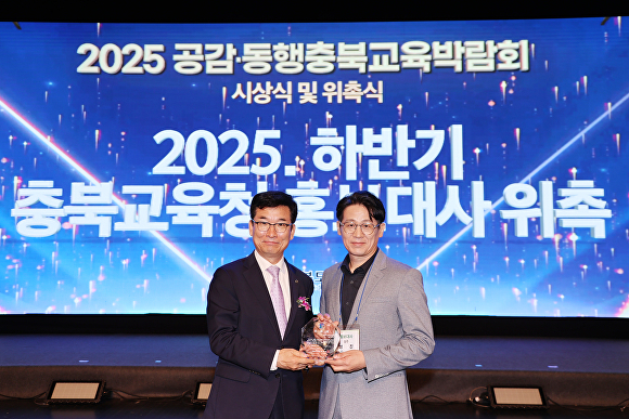 정진씨는 23일 2025 공감‧동행 충북교육박람회가 열리고 있는 충북교육문화원 대공연장에서 윤건영 충북교육감으로부터 홍보대사 위촉패를 받았다고 밝혔다.