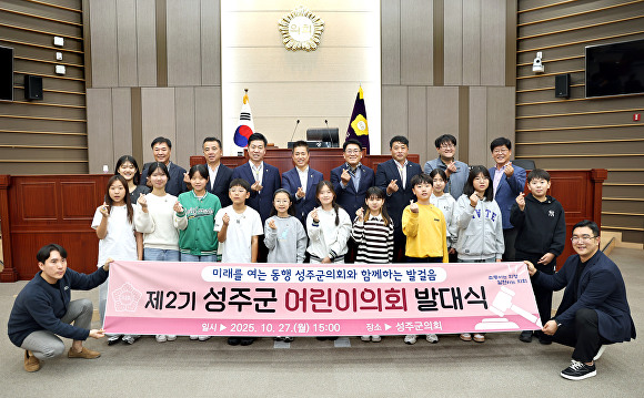 [아이뉴스24 이창재 기자] 경북 성주군의회(의장 도희재)는 지난 27일 제2기 성주군의회 어린이의회 발대식을 열고, 지역 아동들이 직접 참여하는 미래 성주 만들기에 나선다고 28일 밝혔다.