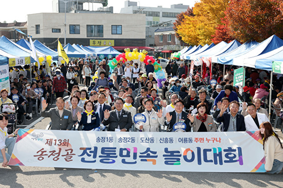 행사에는 전통도시인 △송정1·2동 △도산동 △신흥동 △어룡동 주민들이 참여해, 전통 민속놀이인 △투호 △제기차기 △고무신 던지기 △풍선 불어 날리기 등을 진행했다.