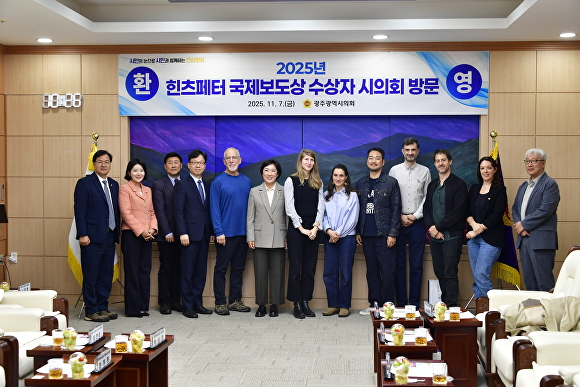 [아이뉴스24 한봉수 기자] 광주광역시의회는 시의회 열린시민홀에서 2025년도 ‘힌츠페터 국제보도상’ 수상자·공동조직위원장 등을 초청해 축하하고 격려하는 시간을 가졌다고 밝혔다.