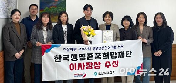 [아이뉴스24 김장중 기자] 경기도 오산시가 정신건강복지센터에서 추진한 ‘생명존중안심마을’사업에서 자살예방사업 우수사례로 선정돼, 한국생명존중희망재단 이사장상을 수상했다고 10일 밝혔다.