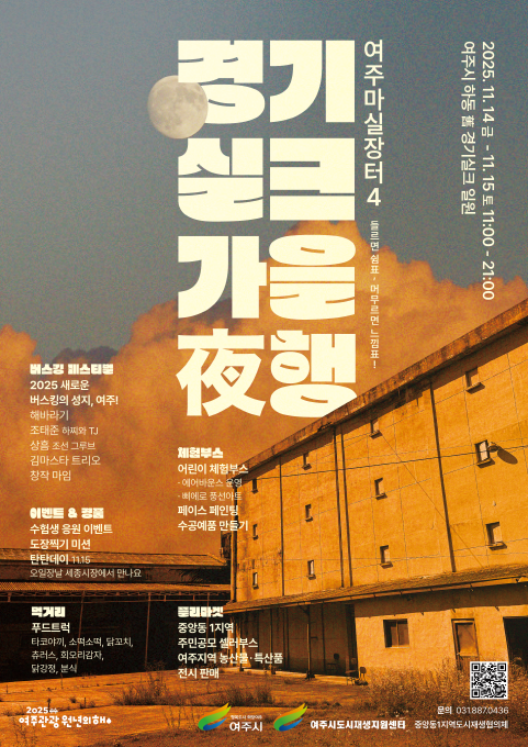 [아이뉴스24 임정규 기자] 경기도 여주시는 오는 14일부터 15일까지 경기실크 일원에서 '여주마실장터4 가을야행'을 개최한다.
