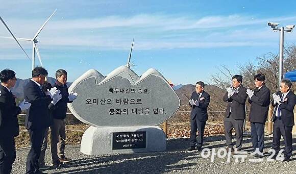 [아이뉴스24 이민 기자] 경북 봉화군은 지역 청정에너지 시대를 앞당기는 ‘봉화 오미산 풍력발전 준공 기념행사’를 열었다.