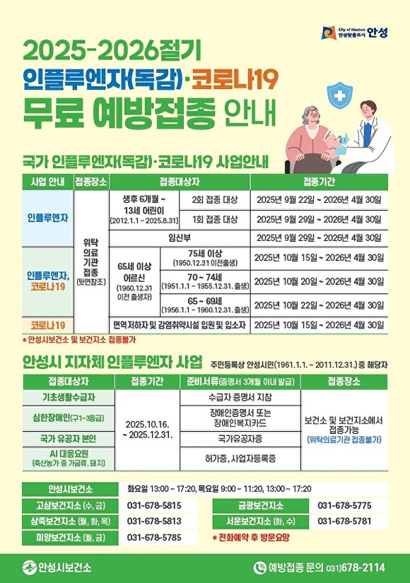 이에 시는 지난 9월 22일부터 ‘2025~2026절기 인플루엔자 국가예방접종 사업’을 시행 중이다.
