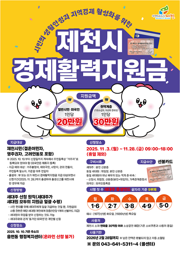 제천시가 자체 지급하는 경제활력지원금은 오는 28일 오후 6시 신청 접수를 마감한다.