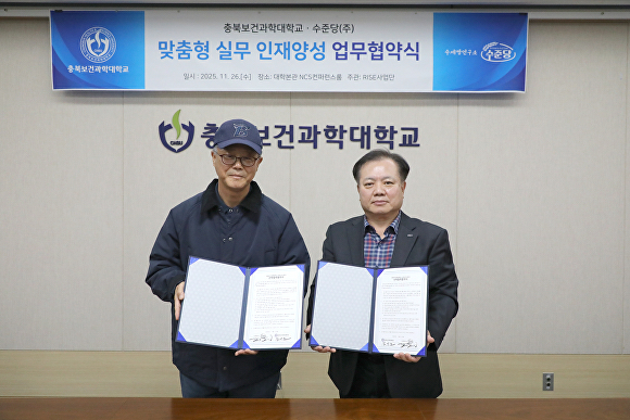 충북보건과학대는 26일 본관 컨퍼런스룸에서 수준과 산학협력 업무협약을 맺었다고 밝혔다.