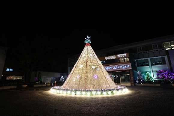오색 조명으로 장식한 트리 외에도 ‘선물 보따리를 메고 군청 청사 등 건물을 오르는 산타’, 다양한 모양의 빛 조형물들이 설치돼 보는 즐거움과 감동을 더하고 있다.