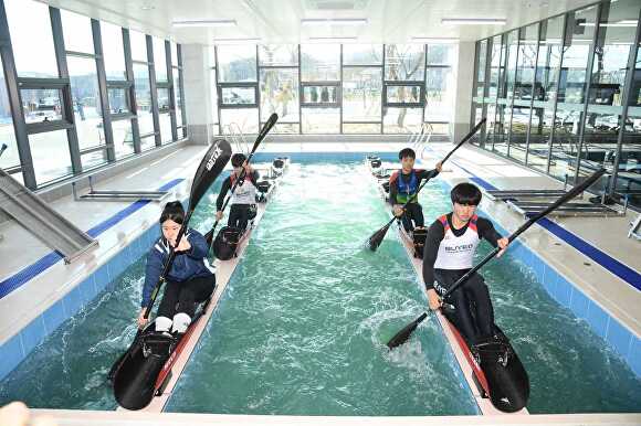 [아이뉴스24 정다운 기자] 날씨에 발이 묶이던 카누 훈련의 한계가 부여에서 깨진다. 실내 로잉탱크를 갖춘 최첨단 카누훈련센터가 문을 열면서 사계절 실전 훈련이 가능한 기반이 마련됐다. 부여군은 이를 발판으로 국가대표 전지훈련 유치와 지역 스포츠산업 활성화를 동시에 노린다.