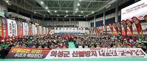 [아이뉴스24 이민 기자] 경북 의성군이 산불 발생 위험이 큰 시기를 맞아 산불방지 대군민결의대회를 열고 산불 예방을 위한 군민 실천 의지를 하나로 모았다.