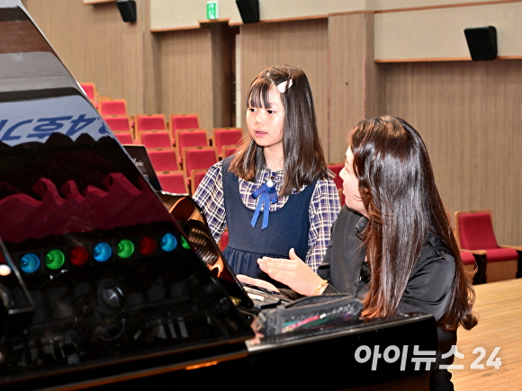 강세영 학생이 피아니스트인 박미정 님에게 상고문화제 피아노 콩쿠르 마스터 클래스를 받고 있다. [사진=한울본부]
