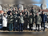 [포토] 국회 국방위 12사단 향로봉경계작전중대 방문22일 강원도 인제군 12사단 향로봉경계작전중대를 방문한 국회 성일종 국방위원장 등 국방위 의원들이 기념촬영을 하고 있다.22일 강원도 인제군 12사단 향로봉경계작전중대를 방문한 국회 성일종 국방위원장 등 국방위 의원들⋯
