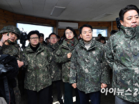 [포토] 국방위 소속 위원들 12사단 향로봉 방문22일 강원도 인제군 12사단 향로봉경계작전중대를 방문한 국회 성일종 국방위원장 등 국방위 의원들이 브리핑을 듣고 있다.22일 강원도 인제군 12사단 향로봉경계작전중대를 방문한 국회 성일종 국방위원장 등 국방위 의원들이⋯