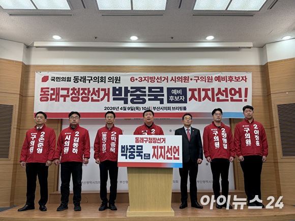 현직 동래구의원·예비후보, 박중묵 동래구청장 예비후보 지지국민의힘 소속 동래구의회 현직 구의원들과 시·구의원 예비후보자들이 부산 동래구청장 선거에 출마한 박중묵 예비후보자에 대한 지지를 선언했다. 이날 기자회견에는 동래구의회 서덕미·오영진·조진우 구의원과 김동하(시의원 제1선거구), 정명철, 손준영, 이정훈,⋯