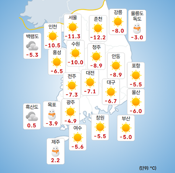 [날씨] 부울경 대체로 맑음…체감온도 ‘뚝’26일 부산과 울산, 경남 지역은 대체로 맑겠으나 기온이 크게 떨어져 춥겠다. 부산지방기상청에 따르면 이날 오전 9시 현재 주요 지역의 기온은 부산 -5도, 울산 -6도, 창원 –5.5도로 기록됐다. 낮 최고기온은 부산 2도, 울산 1도, 경남 –⋯