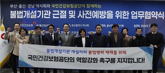 건보공단 부울경본부, 부산·울산·경남 약사회와 불법개설 기관 근절 협력국민건강보험공단 부산울산경남지역본부가 부산광역시 약사회, 울산광역시 약사회, 경상남도 약사회와 ‘불법개설 의료기관 근절 협력’을 위한 업무협약을 체결했다. 주요 협약 내용은 △불법개설기관 근절 협력으로 국민건강권 향상과 사전예방 △사무장병원·면허대여 약⋯