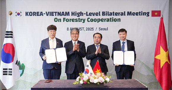 [조이뉴스24 이미영 기자] 산림청(청장 임상섭)은 롯데호텔 서울에서 베트남 농업환경부와 '한-베트남 산림 협력 고위급 양자회의'를 열고 기후변화 대응을 위한 국외산림탄소축적증진사업(REDD+) 협력 강화 방안을 논의했다고 8일 밝혔다.이번 회의에는 임상섭 산림청장과 아이뉴스24 -
