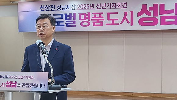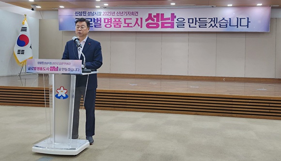 신상진 성남시장이 21일 시청 한누리에서 2025년 신년 기자회견을 열고 시정 구상을 밝히고 있다. [사진=정재수 기자]
