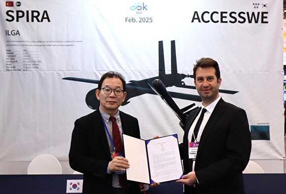 억세스위는 지난 27일 부산 벡스코에서 열린 DSK(옛 드론쇼 코리아) 2025 행사장에서 튀르키예 방산기업 SPIRA社(스피라)와 자폭 드론 도입을 위한 업무협약을 체결했다.