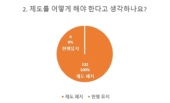 설문 결과 참여자 132명 전원은 ‘제도를 어떻게 해야 한다고 생각하나’라는 질문에 “시간선택제 채용공무원 제도 폐지 후 일괄 전일제 전환해야 한다”고 답했다.