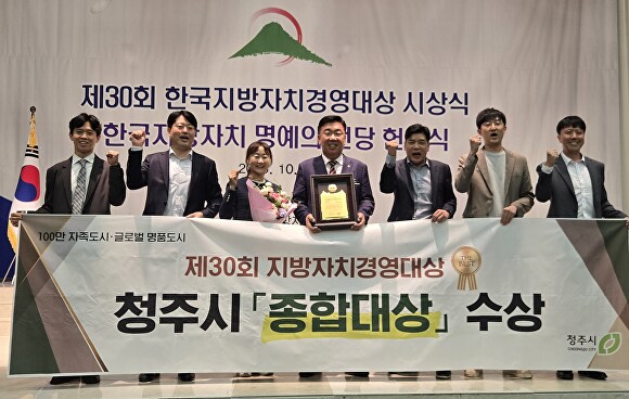 청주시는 14일 서울 공군호텔에서 열린 30회 한국지방자치경영대상 시상식에서 최고 영예인 기관 종합대상을 수상했다고 밝혔다.