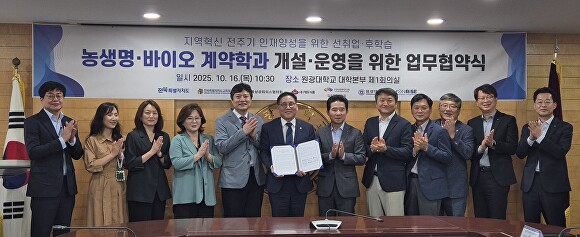 [아이뉴스24 박종수 기자] 전북특별자치도교육청은 16일 원광대학교 대학본부에서 지역혁신 전 주기(全周期) 인재양성 인재 양성을 위한 ‘직업계고 선취업 계약학과 운영 업무협약’을 체결했다고 밝혔다.