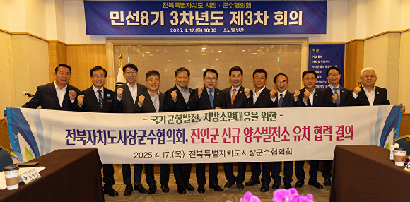 [아이뉴스24 박종수 기자] 전북특별자치도 시장·군수협의회는 17일, 국가균형발전과 지역경제 활성화를 위한 신규 양수발전소의 진안군 유치를 지지하는 공동 결의문을 채택했다.
